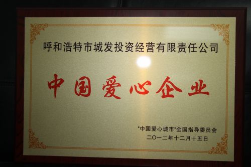 城發公司被授予2012年度“中國愛心企業”稱號。